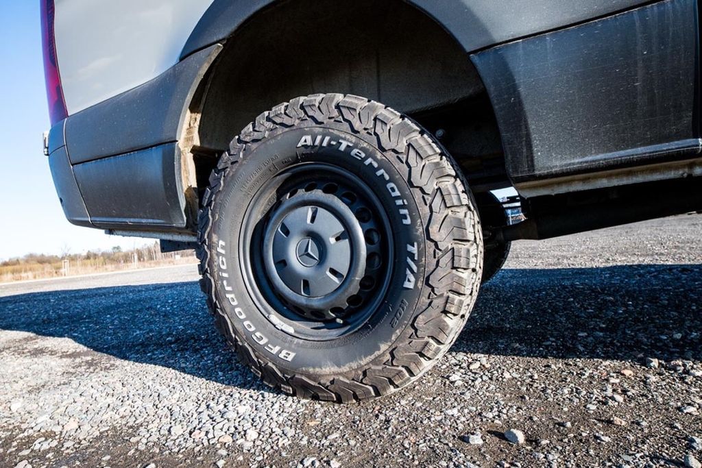 AT-Bereifung mit BF-Goodrich 245/75 R16 auf Stahlfelgen, Ersatzrad