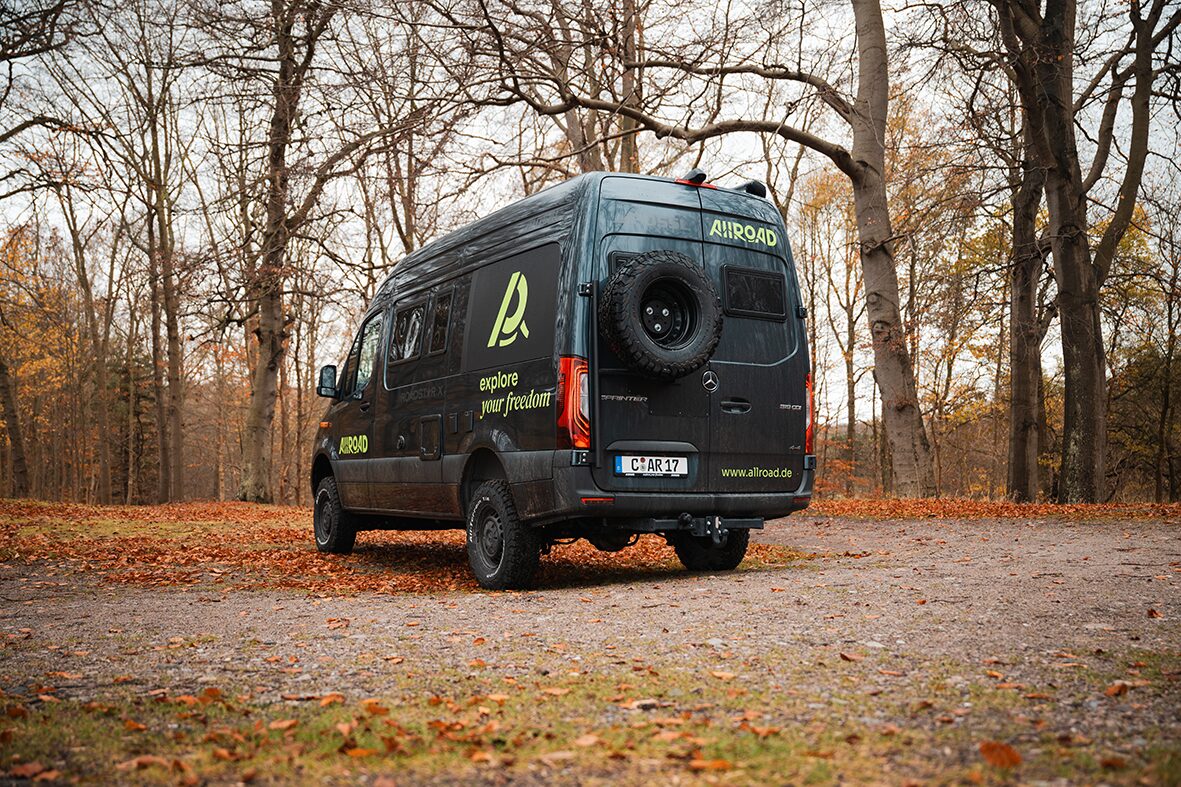 • AllRoad-typische 4×4-Konfiguration mit Offroad-Fokus: Allrad-Sprinter, AT-Bereifung, Unterfahrschutz und vollwertigem Ersatzrad – für echte Offroad-Touren statt nur „Schotterweg light“.
